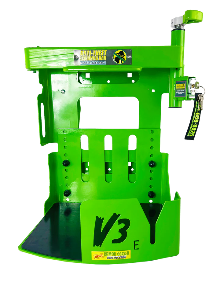 - Rack height: 24 inchesNote: All hardware for mounting to open and enclosed trailers included in every package. In the event that you would like to change out your locks for individual security, the lock size that you will need is a Masterlock #3 with a 40mm body and a 19mm shackle.
